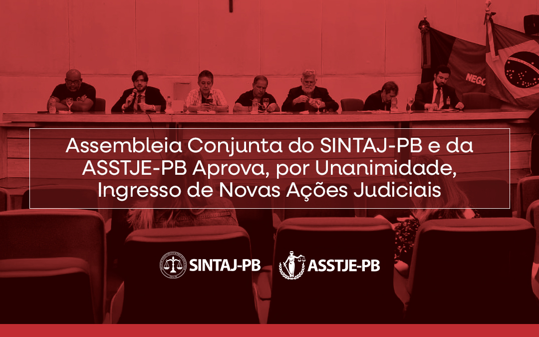 ASSEMBLEIA CONJUNTA DO SINTAJ-PB E DA ASSTJE-PB APROVA, POR UNANIMIDADE, INGRESSO DE NOVAS AÇÕES JUDICIAIS